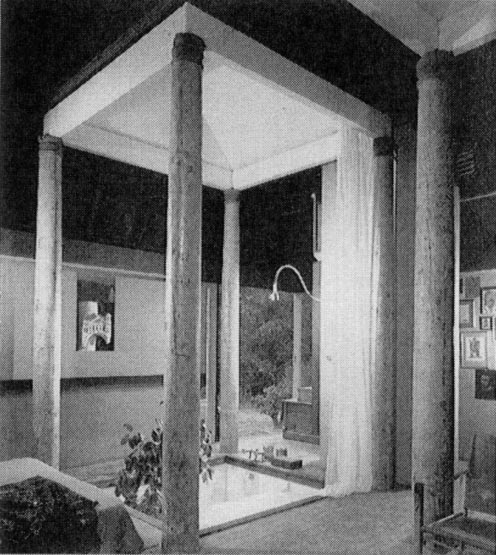 columns can also define a place, as they are in this house, below, by Charles Moore. In this case, the columns define the space for the bathtub in the larger room. It both defines the space and elevates the act of bathing to something important and ritualistic by setting it apart.
