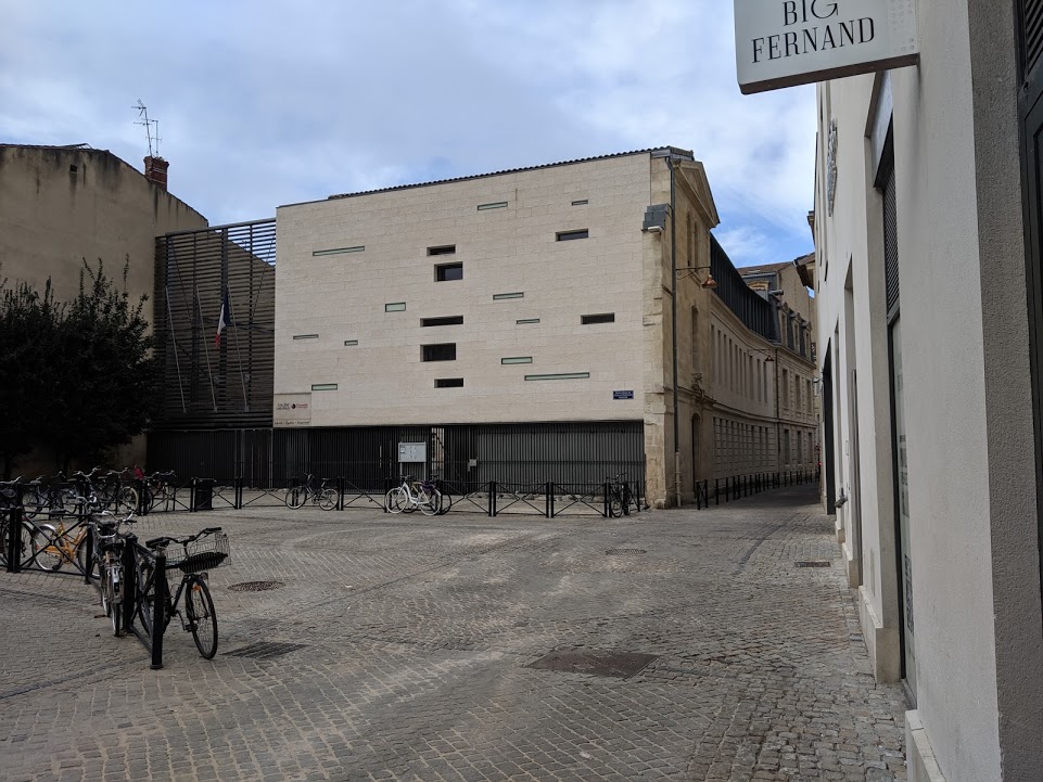 I recently spent a week in Bordeaux, France. The City is the heart of the French wine industry. Much of the City was built in the 18th Century. Here on a walk through the center of the City I found a thoroughly modern facade on the side of an 18th Century building. They used the same limestone on the modern facade as is used throughout the city. This is a government building.One of the things I love about Europe, is the lack of fear of texture. This is a detailed photograph of a lime stone retaining wall in St. Emilion, a small hill town outside of Bordeaux, France, famous for the wines made by the Chateau in the area.The mix of old and new can be quite jarring, but I still love this door way. It is a new door in a 19th century barn. The stone has been dressed and a new steel and glass door has been inserted into the old arched opening. The Corten canopy provides some sculptural relief and marks the entry.Another picture of a modern building inserted into a thoroughly traditional neighborhood. Based on what the guide books tell me, this neighborhood was mostly built in the 17th and 18th centuries. The building on the right looks 19th century to me, but the building to the left is a very recent construction. The architect is using different materials, but similar proportions and dimensions to help stitch the modern building into the ancient neighborhood.This is the old entrance hall to a wine merchant’s building built in the 1740’s. This is the home of the Museum of Wine and Commerce. a charmingly dusty little museum in Bordeaux. The wine merchant had his business on the ground floor and in the caves (basements), and he lived on the floors above. The stair to the left leads to the merchant’s apartment on the upper floors. The stair to the right leads to his wine master’s apartment at the back of the building. The stair in the middle leads down to the caves where the wine was stored. I love the complex geometry of the ceiling vaults.Being France, no major city is free from a spectacular modern civic building. Here, the Cite du Vin, the new museum of wine and culture, soars 8+ stories above the shores of the Gironde river. Designed to resemble a wine carafe, it has a fascinating permanent display about the history of wine culture. There is also a floor with tasting rooms, an auditorium, offices, and the most spectacular tasting bar on the 8th floor with views out over the city of Bordeaux and the surrounding countryside. There is a fancy pants restaurant on the 7th floor, as well as a deli and a brasserie on the ground floor.Decoration is an integral part of classical architecture. This is a keystone to an arch in one of the main buildings in Bordeaux, with a representation of Bacchus, god of wine. It is an appropriate image for the Bordeaux. The image of Bacchus appears on buildings throughout the city.