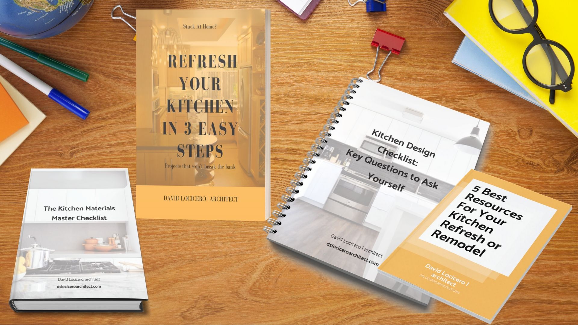 My ebook outlines three techniques I use with my clients to freshen up their kitchens that don’t require ripping out walls, rearranging cabinets, or buying new appliances. These are all techniques you can do yourself – and you can do them during the shelter in place!